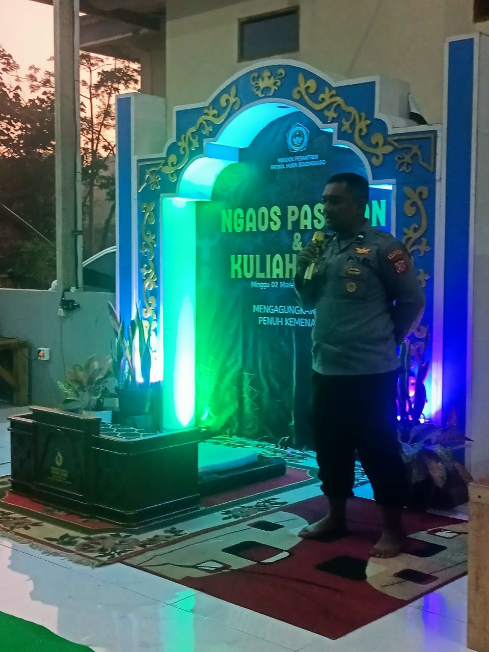 BANDUNG PRAKASA, Polresta Bandung, – Dalam rangka mengisi kegiatan rutin keagamaan yangbpositif di bulan suci ramadhan, Anggota Bhabinkamtibmas Desa Cihanyir, Polsek Cikancung, Polresta Bandung Aipda Zamal Hadiri Pembukaan Kuliah Subuh di Ponpes Fathul Huda Desa Cihanyir, Kecamatan Cikancung Kabupaten Bandung. Minggu (02 Maret 2025)