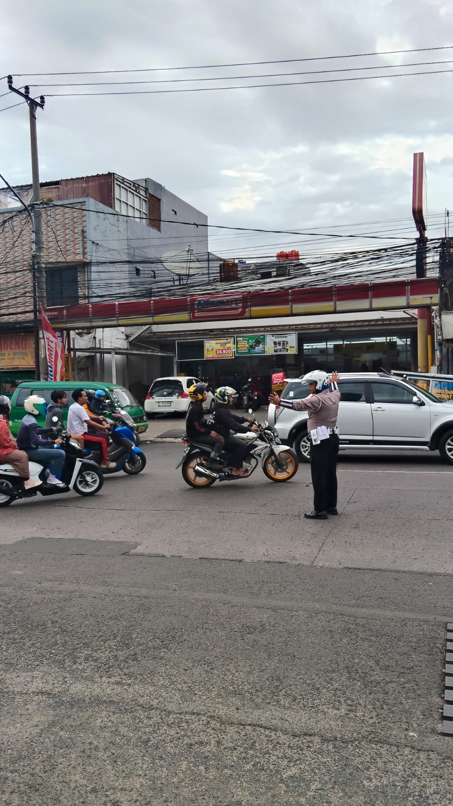 Himbauan Humanis: Mengingatkan pengendara roda dua agar tetap menggunakan helm dan tidak melawan arus demi keselamatan bersama.