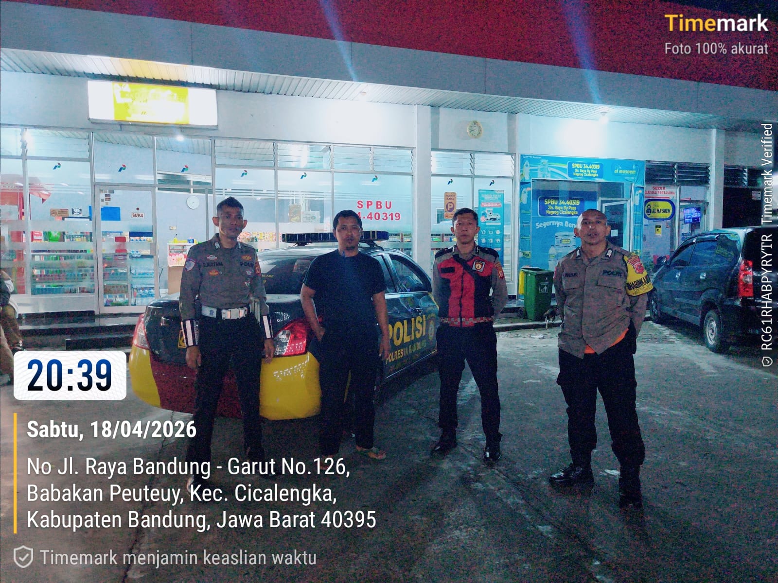 Anggota Piket Fungsi Polsek Cicalengka Polresta Bandung menyatakan bahwa terjadinya tindak pidana dan gangguan kamtibmas dapat terjadi kapanpun dan dimanapun, Untuk mencegah hal tersebut harus di lakukan preventif dengan giatkan patroli kewilayahan pada jam dan tempat rawan terjadinya aksi kejahatan seperti saat ini dialogis ke tempat obvit SPBU sekaligus memberikan himbauan Kamtibmas kepada karyawannya minimarket.