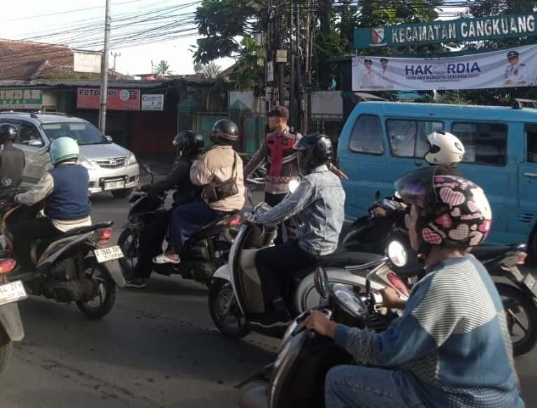 Kapolresta Bandung Kombes Pol Aldi Subartono, SH., S.IK., MH., CPHR., melalui Kapolsek Cangkuang Ipda Didi Dwi Purnomo, S.AP., menyampaikan bahwa pengaturan lalu lintas merupakan bagian dari pelayanan Polri untuk memberikan rasa aman dan nyaman kepada masyarakat pengguna jalan.
