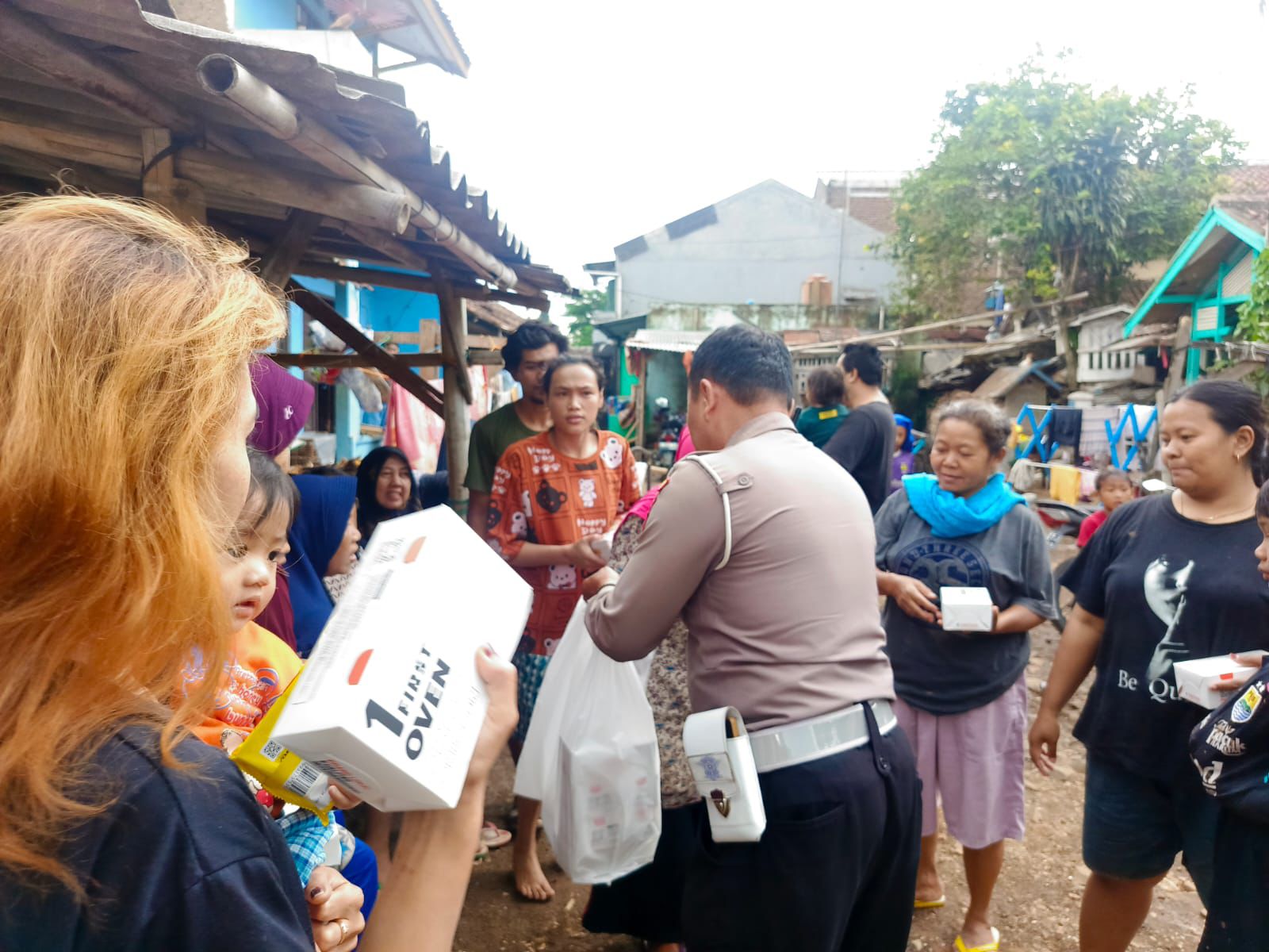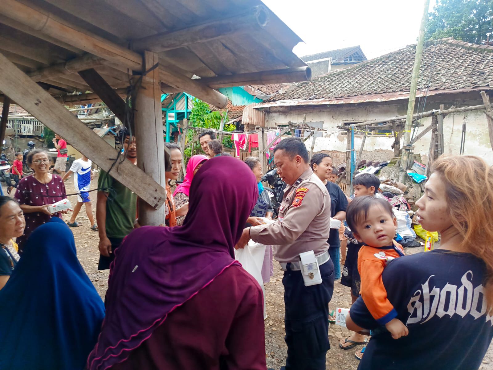 Anggota Satlantas Polresta Bandung Salurkan Nasi Kotak untuk Warga Cilampeni Terdampak Banjir