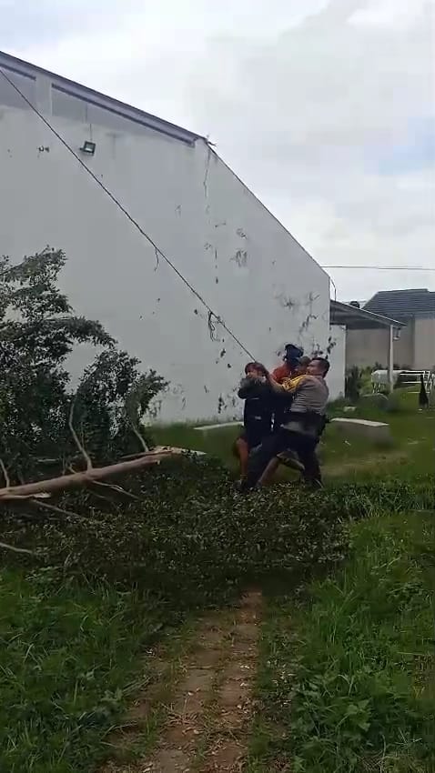 Bersama warga setempat, ia melaksanakan pemotongan pohon yang dinilai rawan tumbang di Kp. Nagrak RT 02 RW 07, Desa Jatisari, Kecamatan Cangkuang, Kabupaten Bandung, Sabtu (17/1/2026).