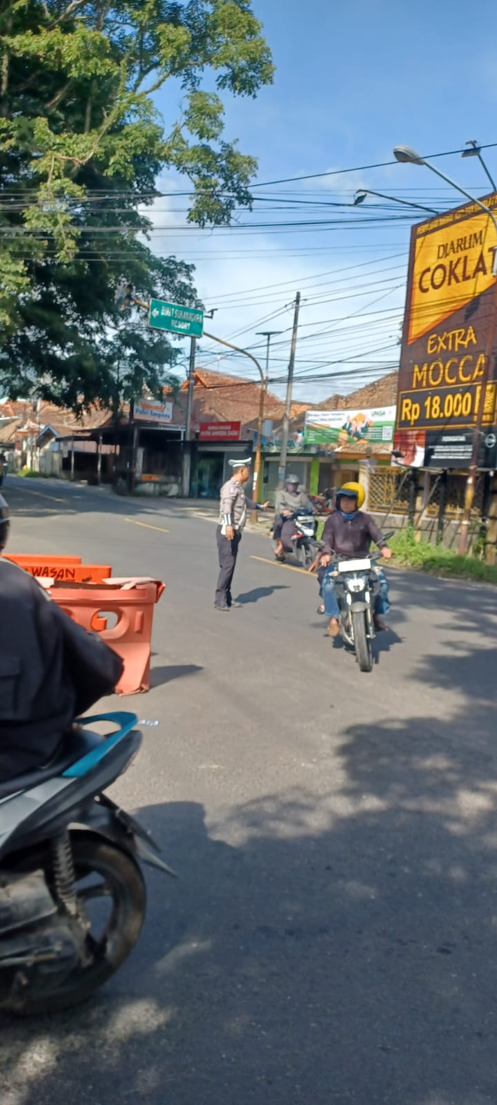 Selain pengaturan lalu lintas, petugas juga memberikan imbauan kepada pengendara agar tetap mematuhi aturan lalu lintas, tidak parkir sembarangan, serta mengutamakan keselamatan selama perjalanan.