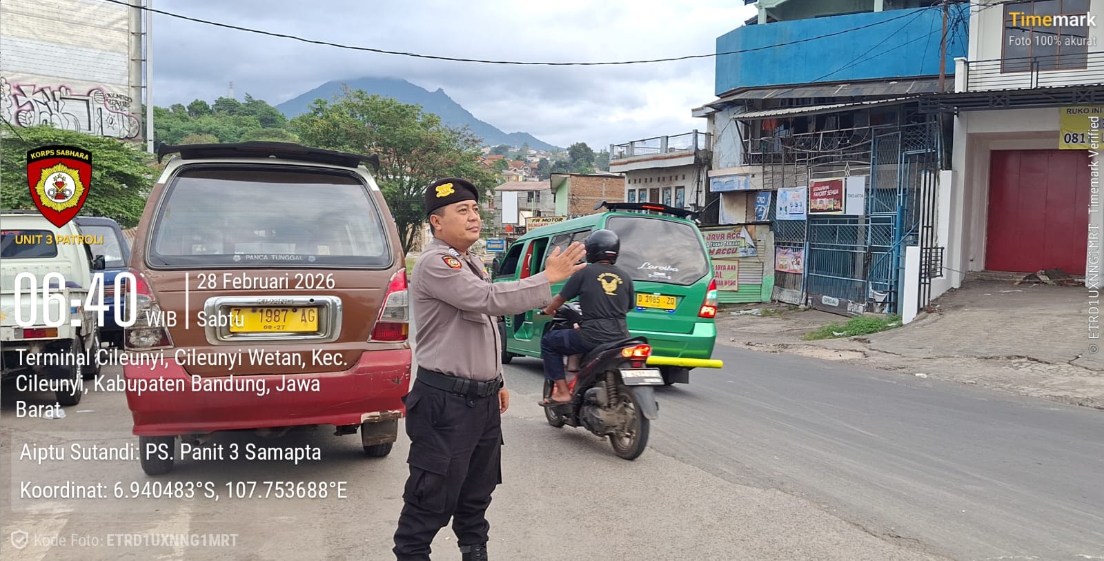 Kegiatan tersebut dilaksanakan oleh Aiptu Sutandi bersama rekannya Bripka Andri Nugraha dalam rangka Protap (Prosedur Tetap) Pengaturan Pagi di depan Pasar Sehat Cileunyi, Kecamatan Cileunyi, Kabupaten Bandung. Sabtu (28/2/2026)