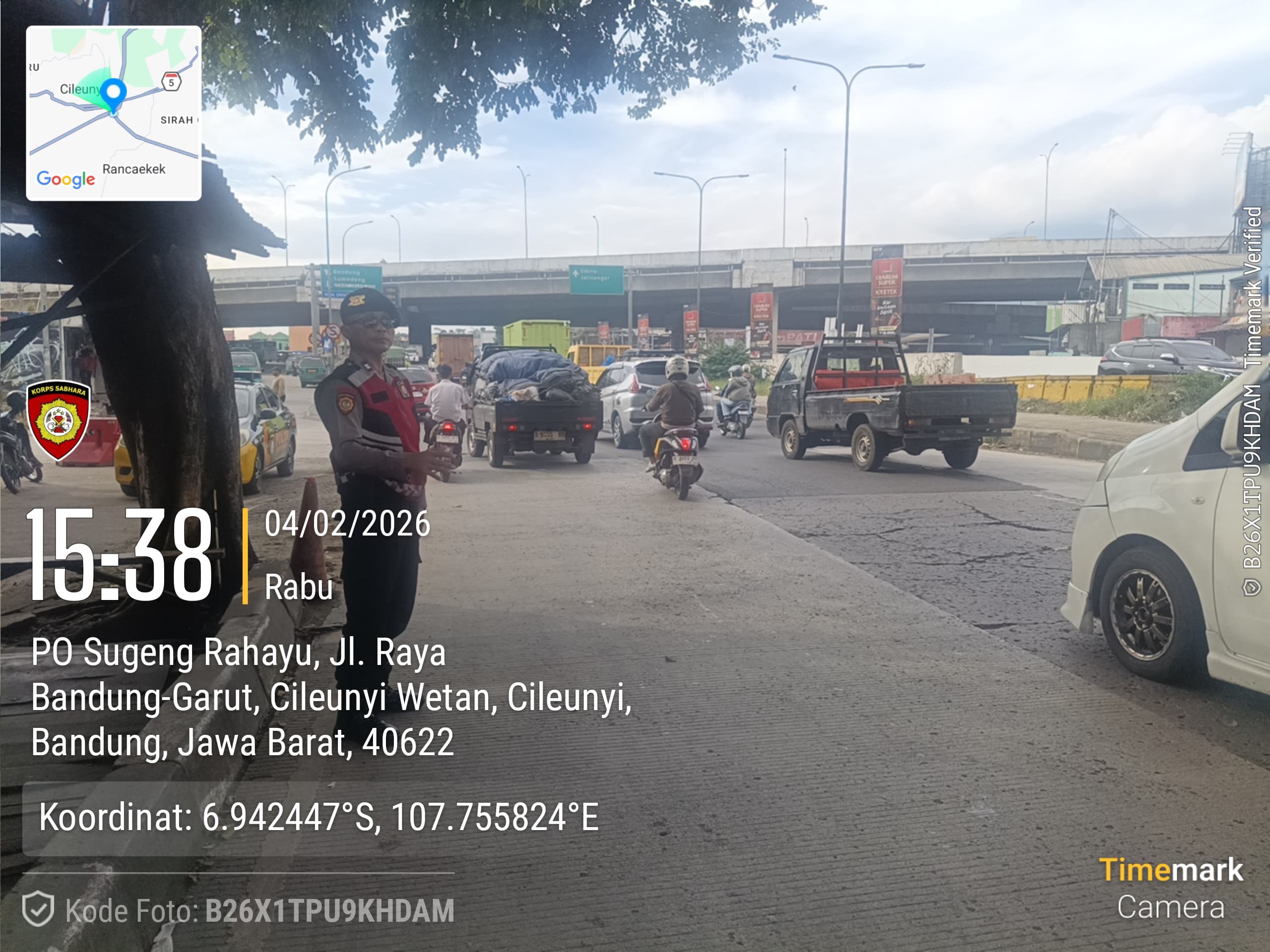 Untuk memastikan arus kendaraan tetap lancar dan aman, anggota Unit Samapta Polsek Cileunyi, Polresta Bandung, Aipda Hadi Misno, turun langsung ke lapangan melaksanakan protap pengaturan lalu lintas (gatur lalin) di pertigaan Jalan Panyawungan, Desa Cileunyi Wetan. Rabu (4/2/2026)