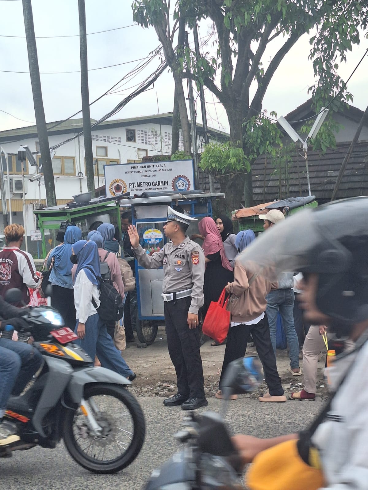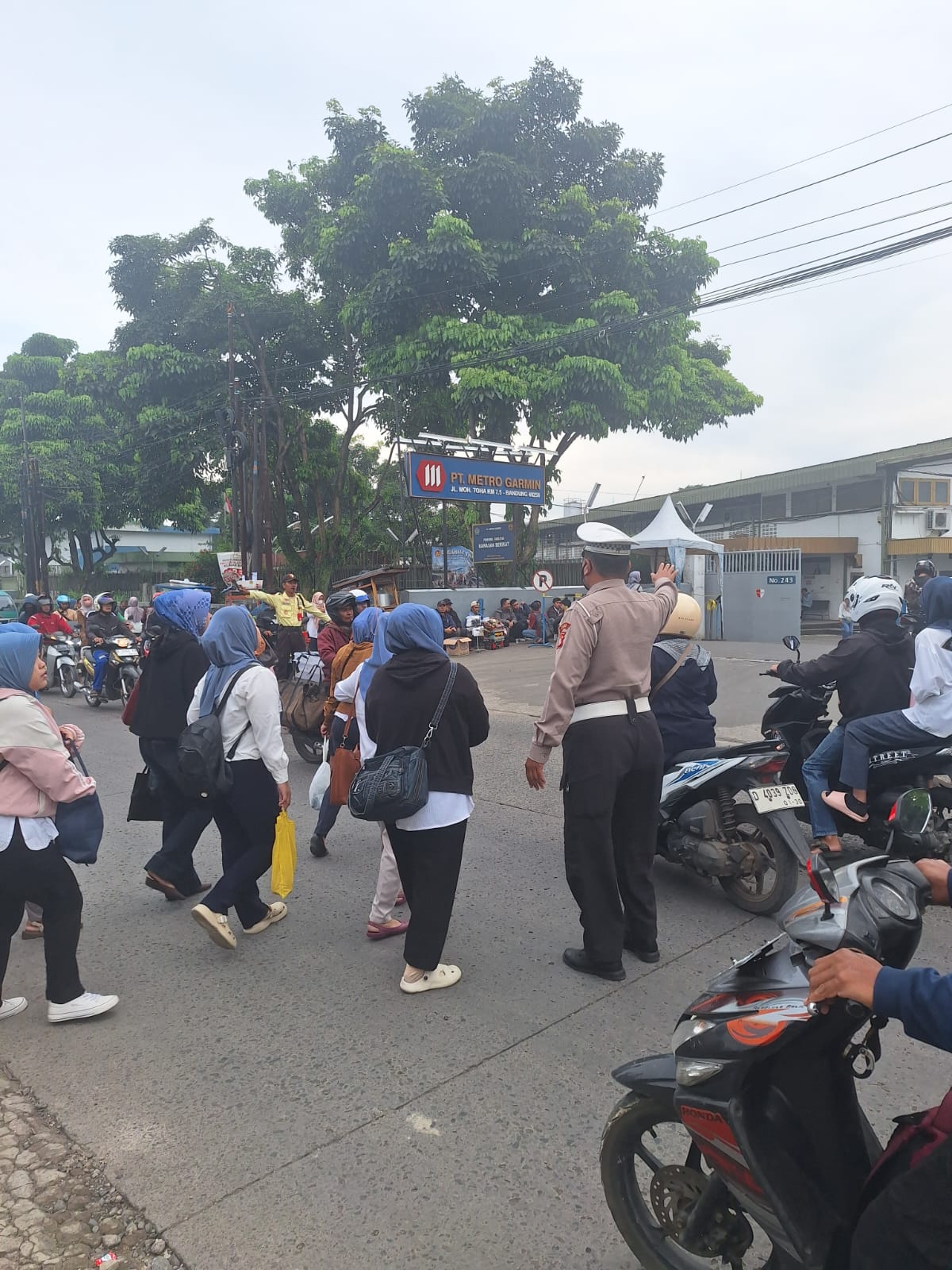 BANDUNGPRAKASA. COM. Dayeuhkolot, Kab. Bandung — Guna mengantisipasi kemeriahan dan kepadatan arus lalu lintas pada jam sibuk pagi hari, personel Unit Lalu Lintas Polsek Dayeuhkolot Polresta Bandung melaksanakan pelayanan pengaturan lalu lintas (gatur pagi) sekaligus membantu penyebrangan karyawan perusahaan di Jalan Moh. Toha, tepatnya di depan PT Metro Garment, Kecamatan Dayeuhkolot, Senin (15/12/2025).