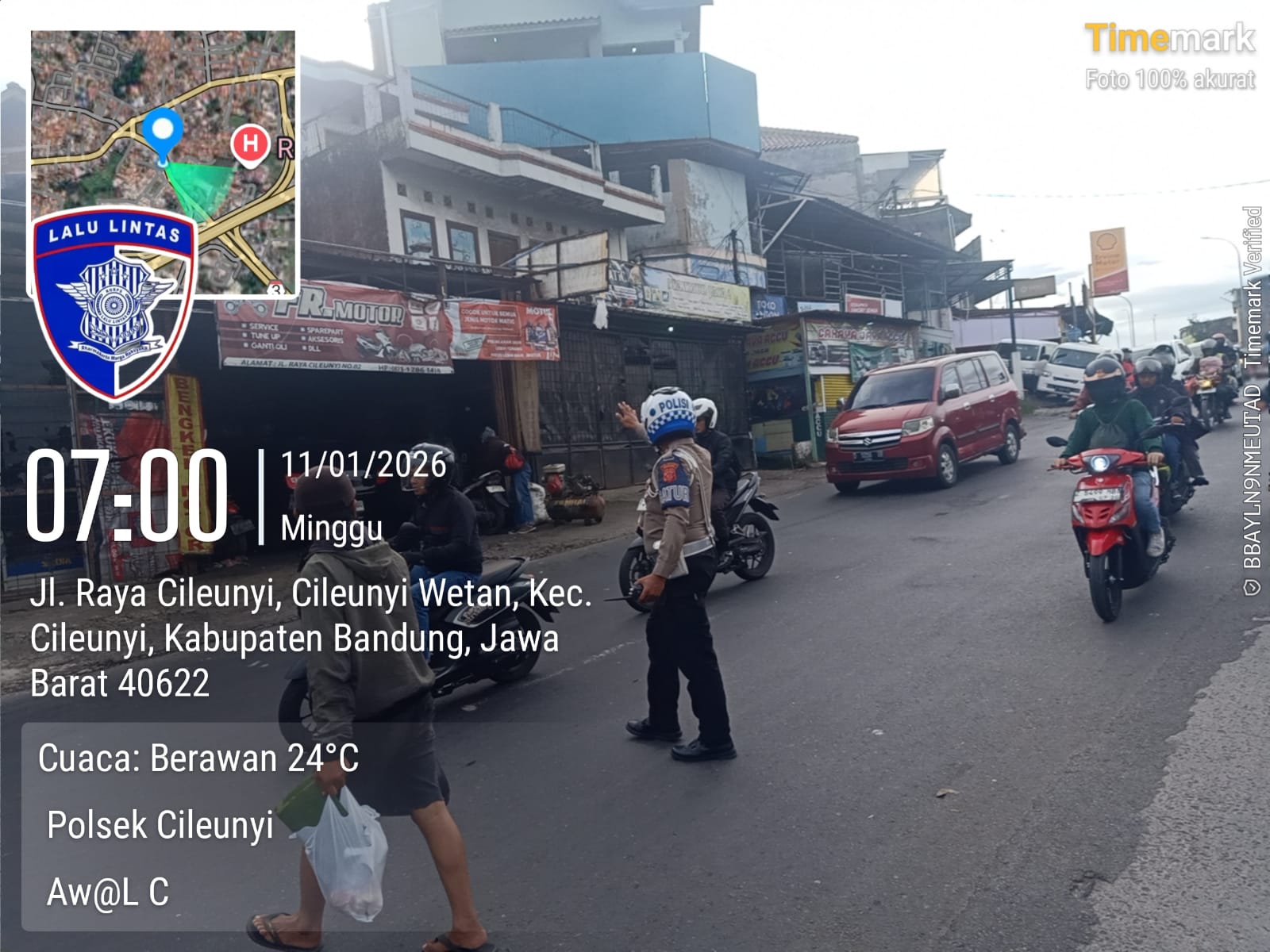 BANDUNGPRAKASA.COM.Bandung – Aktivitas masyarakat yang meningkat pada Minggu pagi mendapat perhatian khusus dari jajaran kepolisian. Anggota Unit Lalu Lintas (Lantas) Polsek Cileunyi, Polresta Bandung, melaksanakan pengaturan lalu lintas (gatur lalin) pagi di depan Pasar Sehat Cileunyi, Kabupaten Bandung, Minggu (11/1/2026)