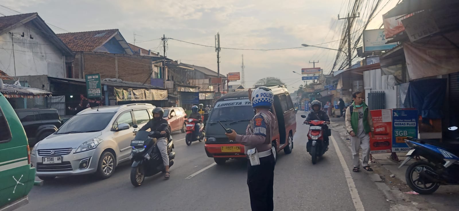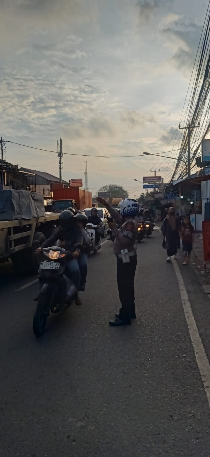 Antisipasi Kepadatan Saat Ngabuburit, Personil Unit Lantas Polsek Cileunyi Atur Lalin Sore di Jalan Raya Al Jawami