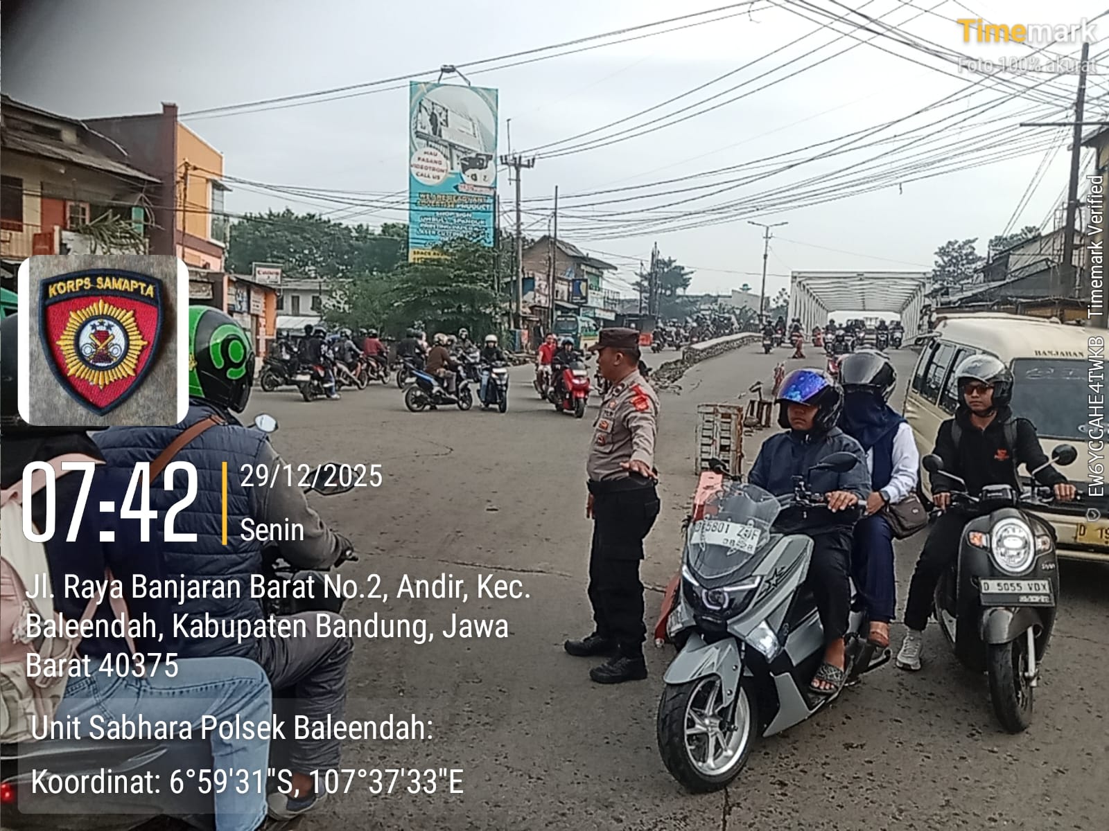 BANDUNGPRAKASA. COM. Baleendah – (29/12/2025) Dalam rangka mengantisipasi potensi kemacetan dan memberikan kelancaran arus lalu lintas, Unit Samapta Polsek Baleendah melaksanakan kegiatan pengaturan lalu lintas di pertigaan Andir, Kecamatan Baleendah, Kabupaten Bandung.