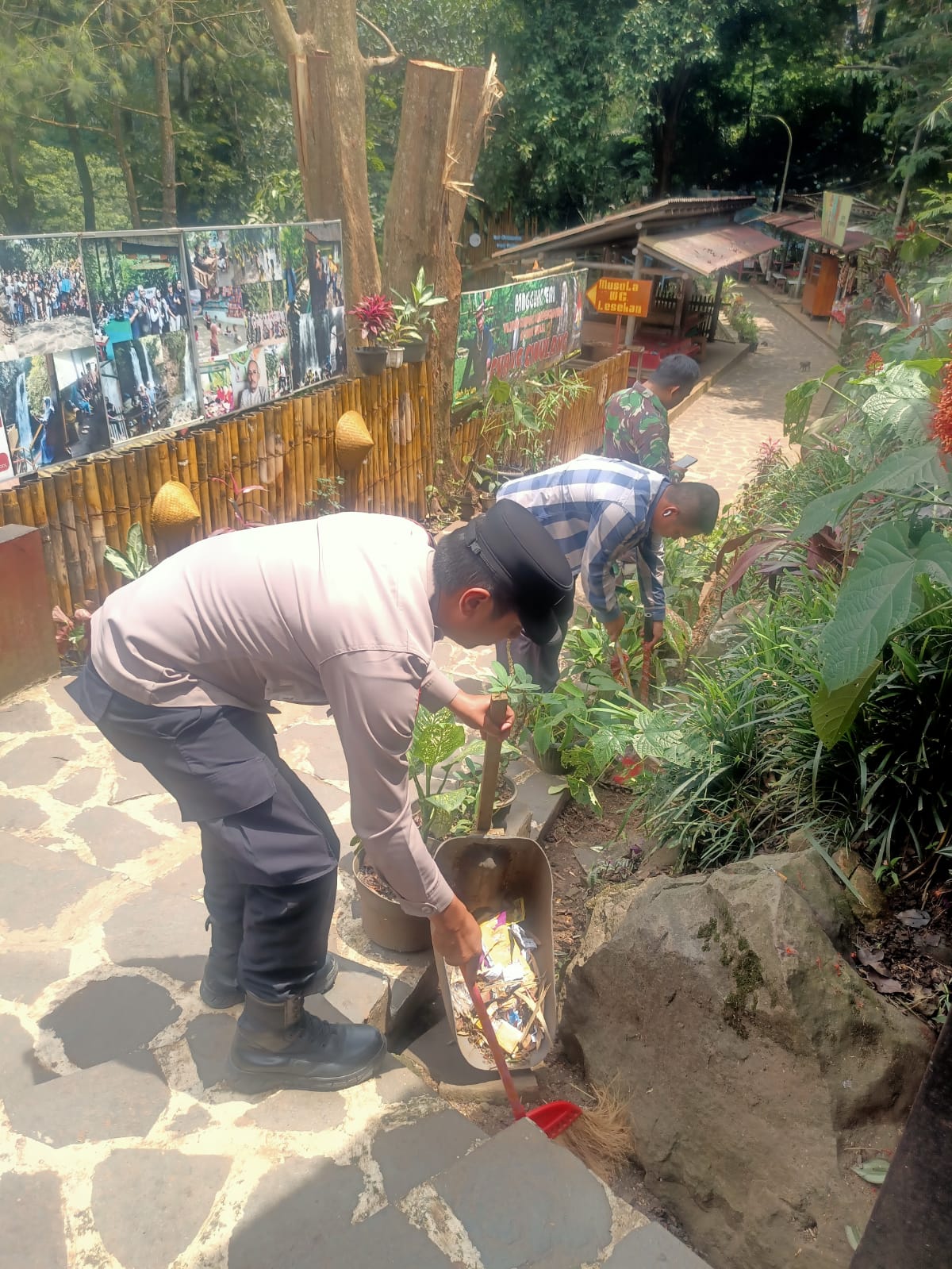 Bhabinkamtibmas Desa Tanjungwangi Polsek Cicalengka Laksanakan Korve di Objek Wisata Curug Cinulang