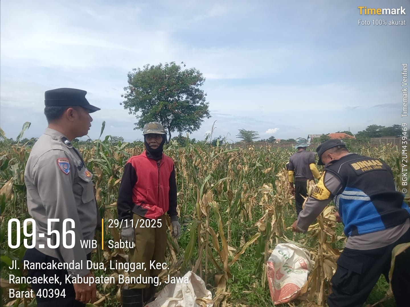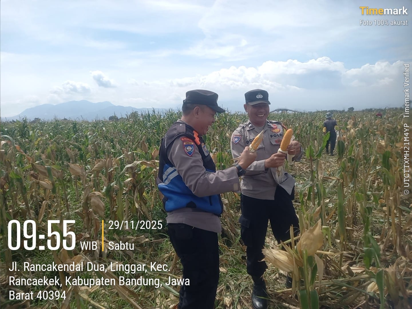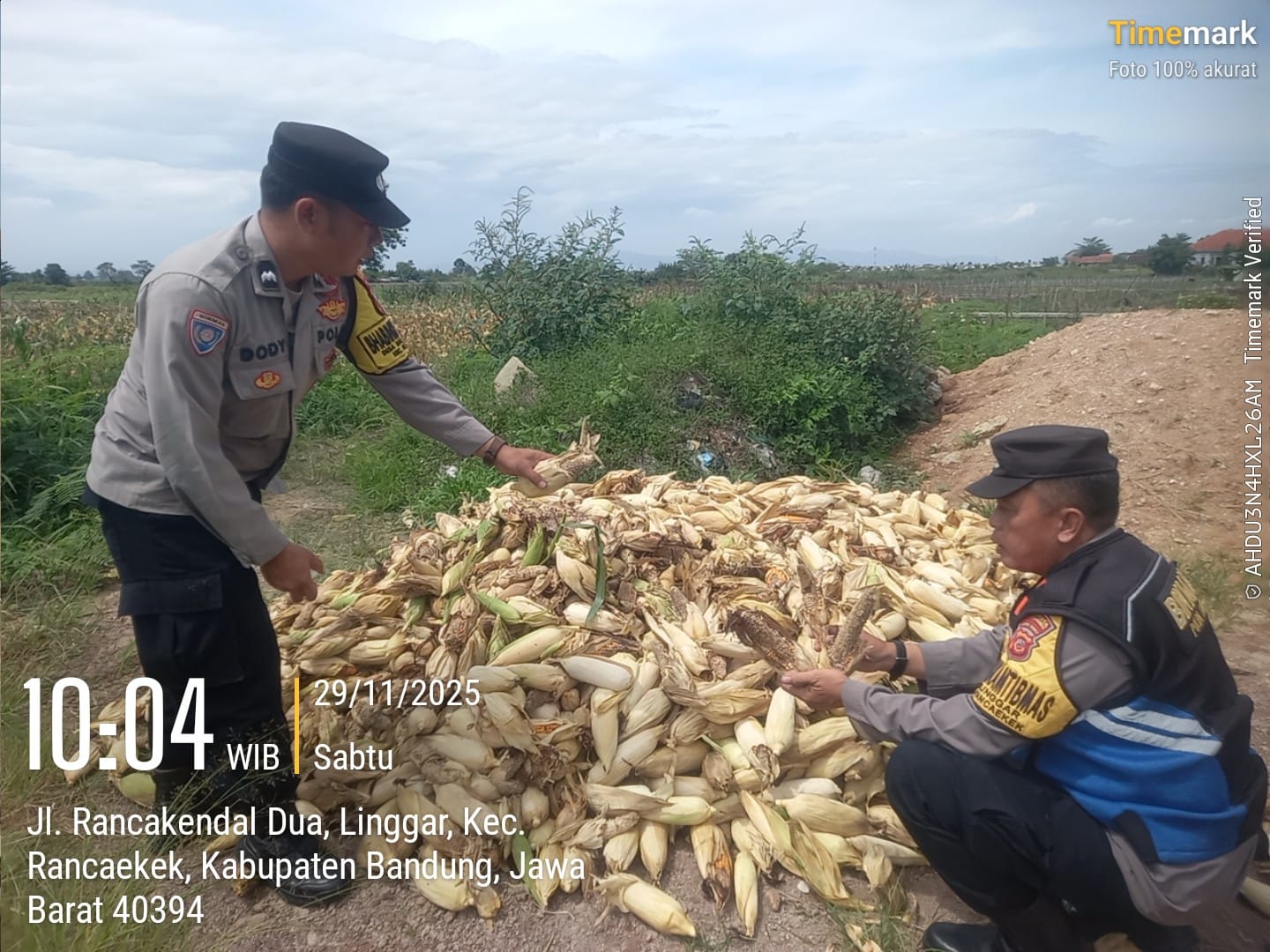 BANDUNGPRAKASA. COM. Upaya penguatan ketahanan pangan terus dilakukan di wilayah Kecamatan Rancaekek. Bhabinkamtibmas Polsek Rancaekek kembali melaksanakan pengecekan perkembangan tanaman jagung hibrida di lahan Non LBS Blok Rancakeong, Kampung Bangkuang, Desa Linggar, Sabtu (29/11/2025).