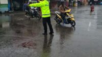 Unit Lantas Polsek Dayeuhkolot Laksanakan Gatur Pagi Meski Diguyur Hujan