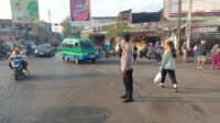 Pastikan Kelancaran Arus Lalin : Anggota Unit Samapta Polsek Solokanjeruk Polresta Bandung Gelar Gatur