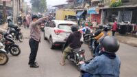 Bhabinkamtibmas Polsek Pameungpeuk Laksanakan Pengaturan Lalu Lintas di Jalan Raya Banjaran