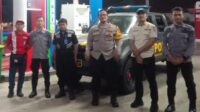 Jamin Keamanan Jelang Tahun Baru di Area SPBU Pertamina : Anggota Piket Fungsi Polsek Pacet Polresta Bandung Gelar Patroli Malam