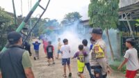 Adanya Warga Terjangkit DBD, Bhabinkamtibmas Desa Ciluncat Monitoring Kegiatan Fogging di RW 12 Komplek Gading Tutuka 2