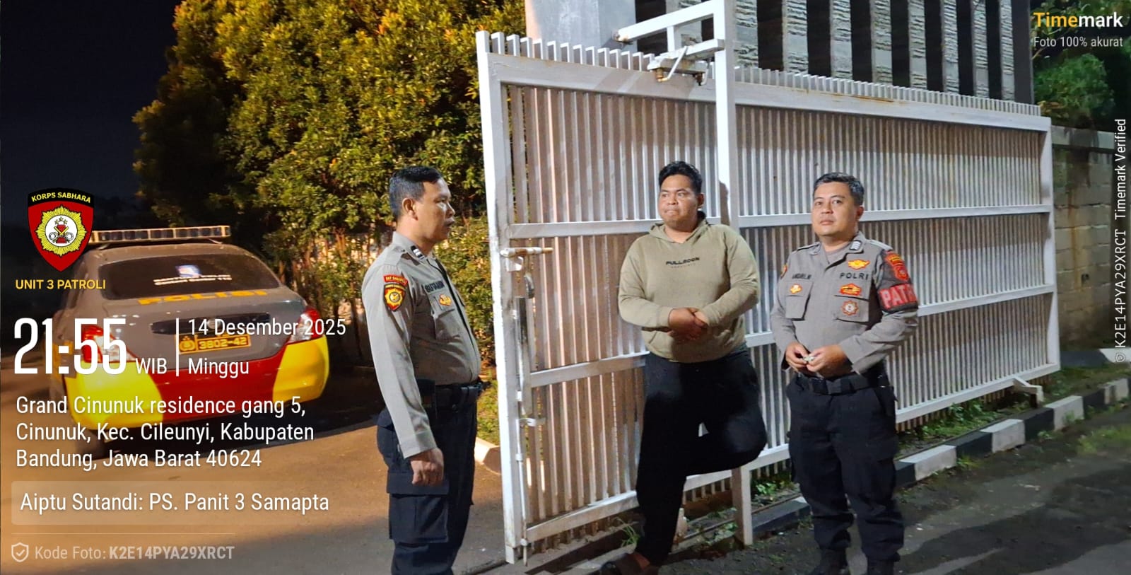 BANDUNGPRAKASA. COM. Cileunyi – Upaya pencegahan tindak kriminalitas terus dilakukan jajaran Polsek Cileunyi, Polresta Bandung, guna menjaga situasi keamanan dan ketertiban masyarakat tetap kondusif, terutama pada malam hari. Salah satunya melalui Patroli Presisi malam hari yang menyasar sejumlah titik rawan dan objek vital di wilayah hukum Polsek Cileunyi. Senin (15/12/2025)