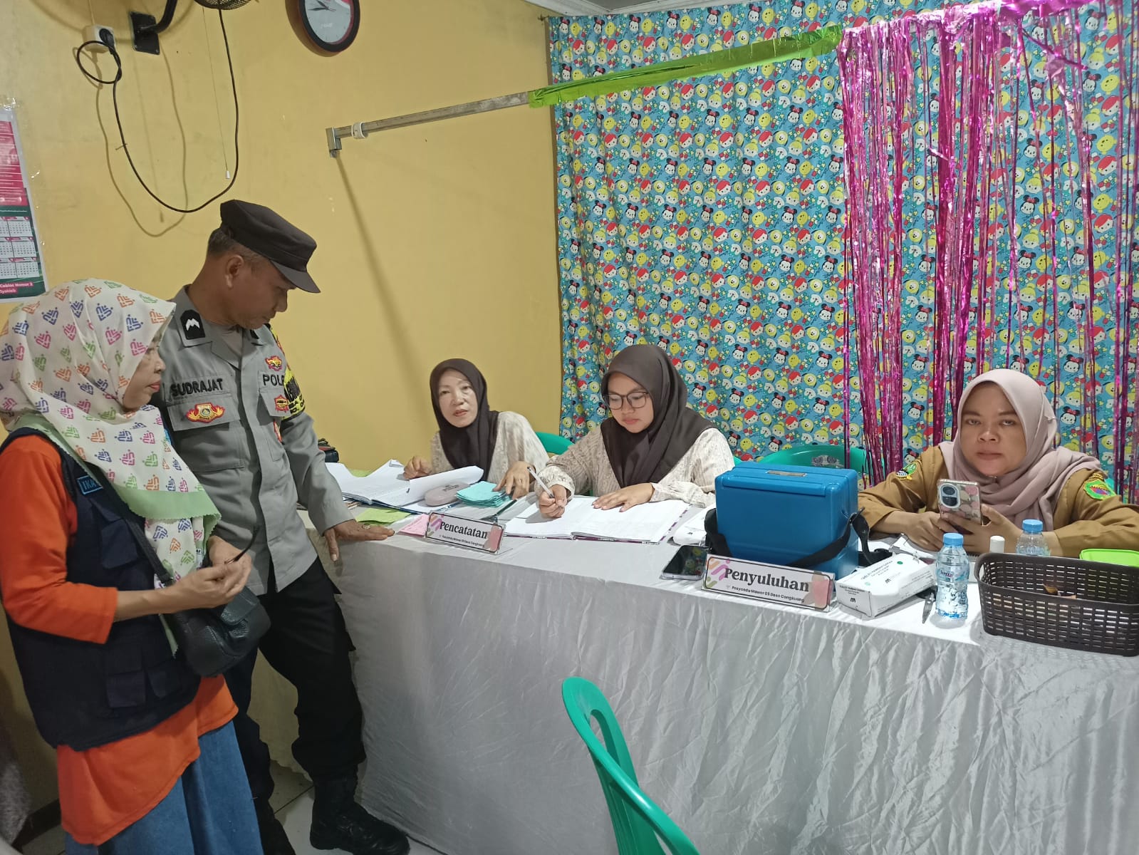 Bhabinkamtibmas Desa Cangkuang Polsek Cangkuang Polresta Bandung Aipda Yayat Sudrajat melaksanakan kegiatan monitoring pemberian Vitamin A kepada balita yang dilaksanakan di Posyandu RW 05 Desa Cangkuang, Kecamatan Cangkuang, Kabupaten Bandung, Senin (9/2/2026).