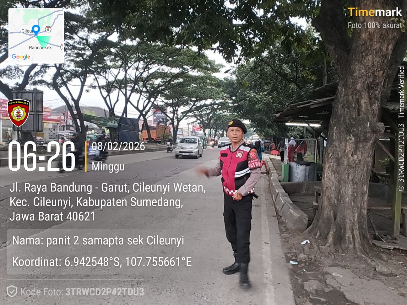 BANDUNGPRAKASA.COM.Cileunyi – Untuk memastikan kelancaran arus lalu lintas dan kenyamanan masyarakat di akhir pekan, anggota Unit Samapta Polsek Cileunyi, Polresta Bandung, Aiptu Hendris Cecep, melaksanakan protap pengaturan lalu lintas (gatur lalin) pagi hari di pertigaan Jalan Panyawungan, Desa Cileunyi Wetan, Kecamatan Cileunyi, Kabupaten Bandung, Minggu pagi. Minggu (8/2/2026)