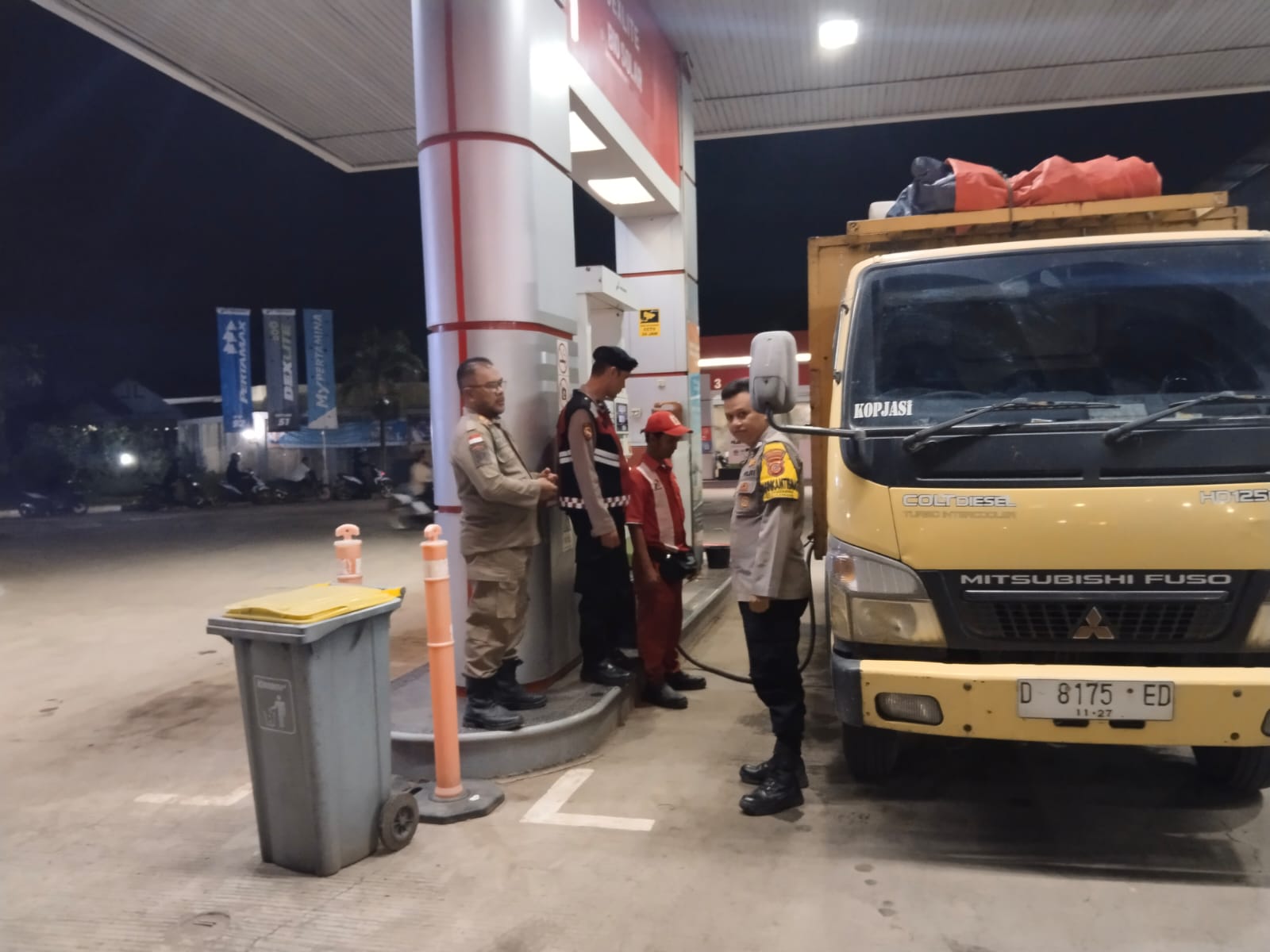 Ciptakan Kondusifitas Wilayah, Anggota Unit Samapta Polsek Cikancung Sambangi Stasiun Pengisian Bahan Bakar Umum