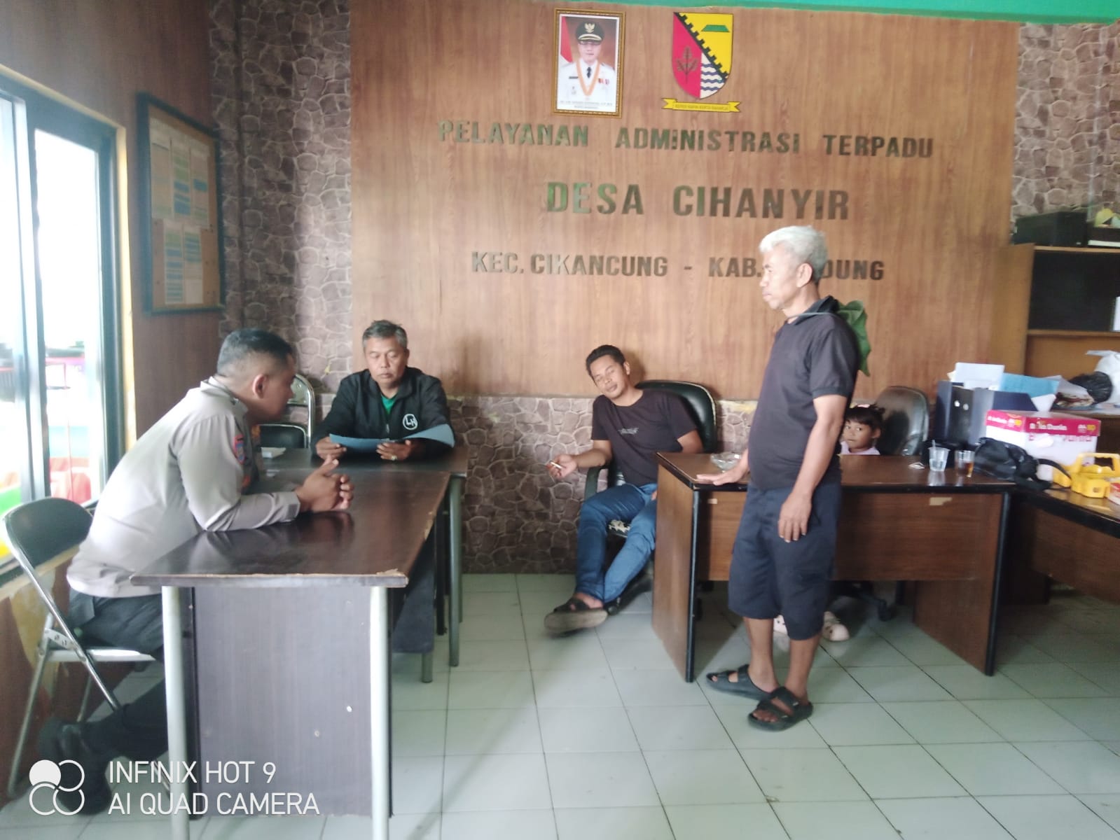 Seperti halnya yang dilakukan Bhabinkamtibmas Desa cihanyir Polsek Cikancung, Polresta Bandung Aipda Zamal yang menyambangi perangkat Desa yang duduk-duduk santai dan ngobrol