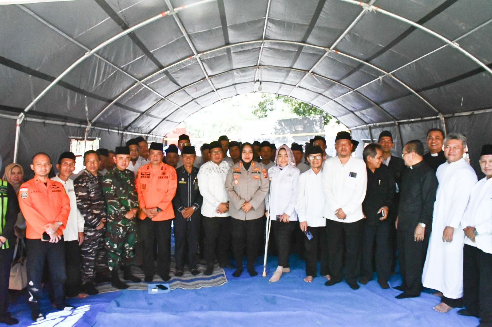 Kegiatan tersebut dihadiri langsung oleh Kapolresta Cirebon Kombes Pol. Sumarni, S.I.K., S.H., M.H., didampingi oleh Dandim 0620/Kabupaten Cirebon Letkol Inf. Mukhamad Yusron, S.A.P. Turut hadir sejumlah pejabat daerah dan tokoh lintas agama, termasuk Kepala Pelaksana BPBD Dr. Deni Nurcahya, Kadinsos Kabupaten Cirebon Dra. Indra Fitriani, M.M., Plt. Kemenag Kabupaten Cirebon H. Slamet, S.Ag., M.Pd., Perwakilan FKUB Kabupaten Cirebon dari enam agama: Islam, Kristen Protestan, Katolik, Hindu, Buddha, dan Konghucu, Personel gabungan dari TNI-Polri, Basarnas, BPBD, relawan, serta unsur masyarakat sekitar.