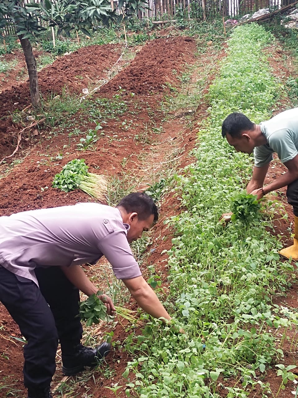 BANDUNG PRAKARSA, Cileunyi – Dalam upaya mendukung program ketahanan pangan pemerintah, Bhabinkamtibmas Desa Cibiru Wetan Polsek Cileunyi Polresta Bandung Polda Jabar Aipda Ence Mulyana terjun langsung ke kebun Bayam bersama warga tani Desa Cibiru Wetan membantu dalam pemanenan Bayam di Kp. Cikoneng 2 Desa Cibiru Wetan Kecamatan Cileunyi Kabupaten Bandung. Jumat (01/1/2025)