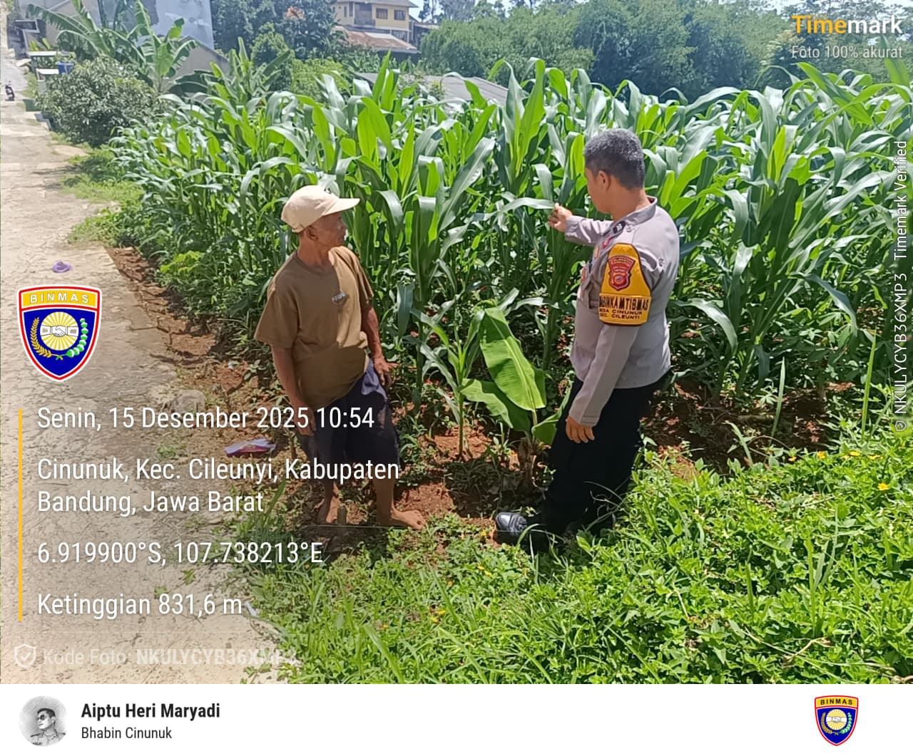 BANDUNGPRAKASA. COM. Cileunyi – Upaya mendukung program ketahanan pangan nasional terus dilakukan jajaran Polsek Cileunyi, Polresta Bandung. Salah satunya melalui kegiatan monitoring dan pendampingan sektor pertanian yang dilaksanakan oleh Bhabinkamtibmas Desa Cinunuk, Aiptu Heri Maryadi, dengan melakukan kontrol langsung lahan jagung non-LBS di wilayah binaannya.