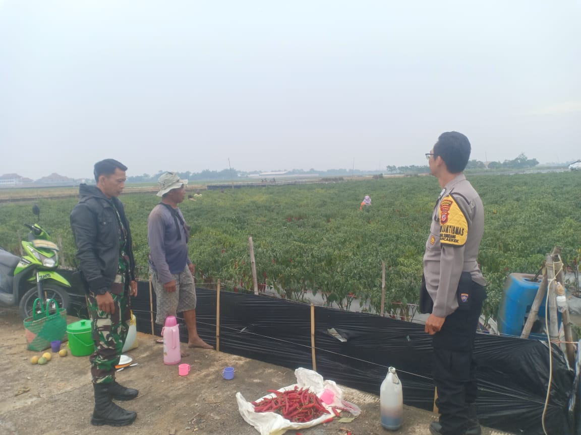 BANDUNG PRAKARSA, Rancaekek, Bhabinkamtibmas Polsek Rancaekek Polresta Bandung Bripka Anjar Pratama didampingi Babinsa Serda Omay kunjungi petani cabai merah sekaligus sampaikan pesan kamtibmas. Rabu 08/01/2025