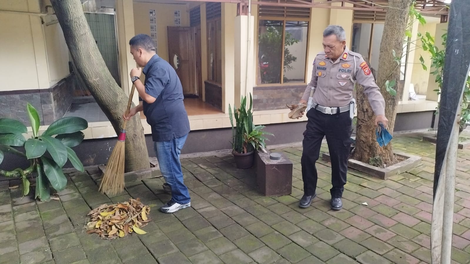Dalam kegiatan itu, anggota tampak menyapu daun-daun kering yang berguguran di halaman depan maupun di sekitar ruangan masing-masing unit. Dengan menggunakan peralatan sederhana seperti sapu lidi dan pengki, mereka membersihkan setiap sudut agar halaman terlihat rapi dan bersih.