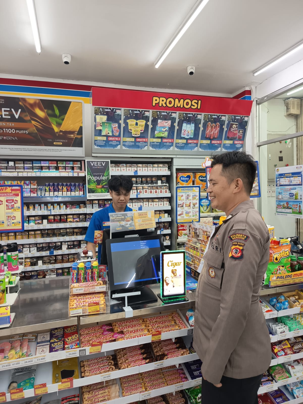 “Kehadiran kami di minimarket adalah untuk memastikan sistem keamanan seperti CCTV berfungsi dengan baik dan memberikan himbauan agar karyawan selalu waspada terhadap lingkungan sekitar,” ujar Bripka Nandar.