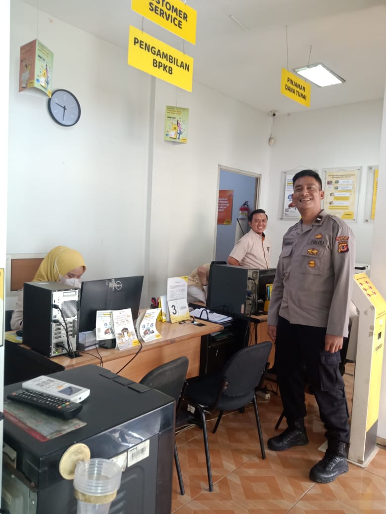 Jamin Keamanan : Aipda Mardani Anggota Unit Samapta Polsek Paseh Rutin Sambangi Petugas/Security Jaga Adira Finance