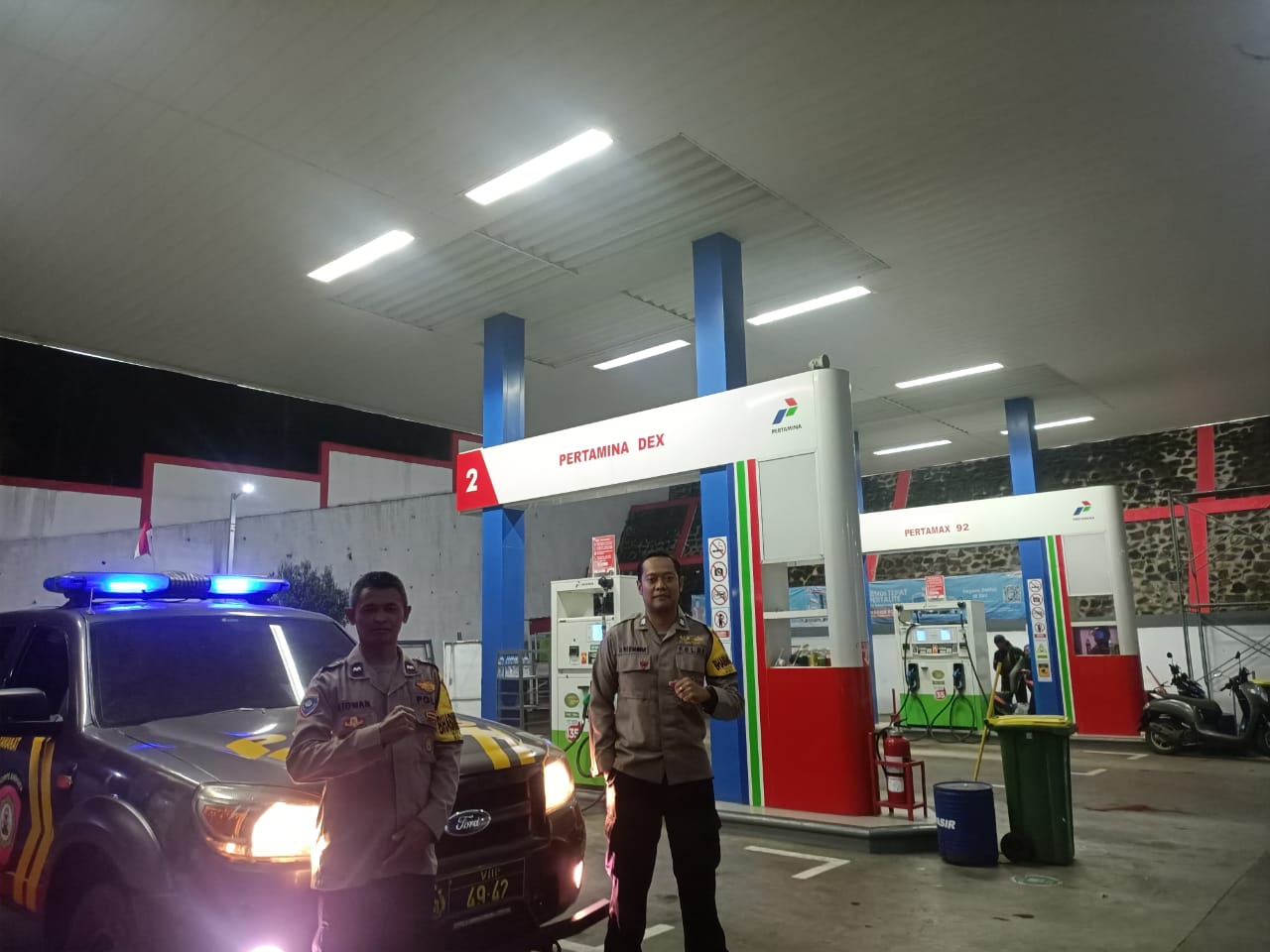 BANDUNGPRAKASA. COM. Polresta Bandung, – Anggota Polsek Ibun, Polresta Bandung Polda Jabar mendatangi SPBU Pertamina, Kecamatan Ibun, Kabupaten Bandung, Kegiatan tersebut dalam rangka cipta kondisi melalui sambang kamtibmas sebagai wujudkan kondusifitas wilayah binaan pada malam hari. Kamis, 25 Desember 2025, malam