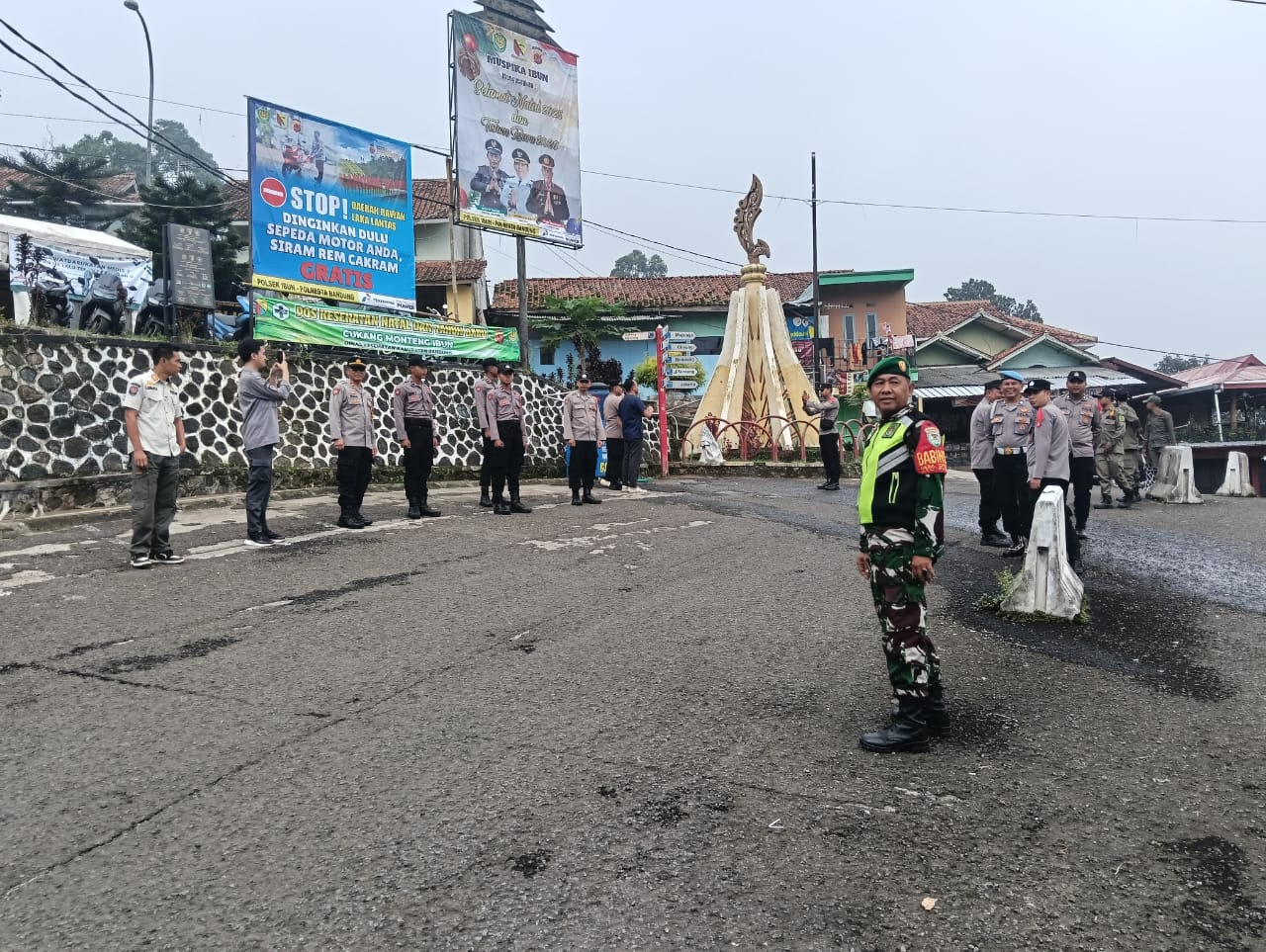 BANDUNGPRAKASA. COM. Polresta Bandung, // Jamin Kelancaran arus lalin di hari natal, Anggota Pos Pengamanan Nataru Cukang Monteng Ibun melaksanakan gatur lalu lintas pagi pada Operasi Lilin Lodaya 2025.