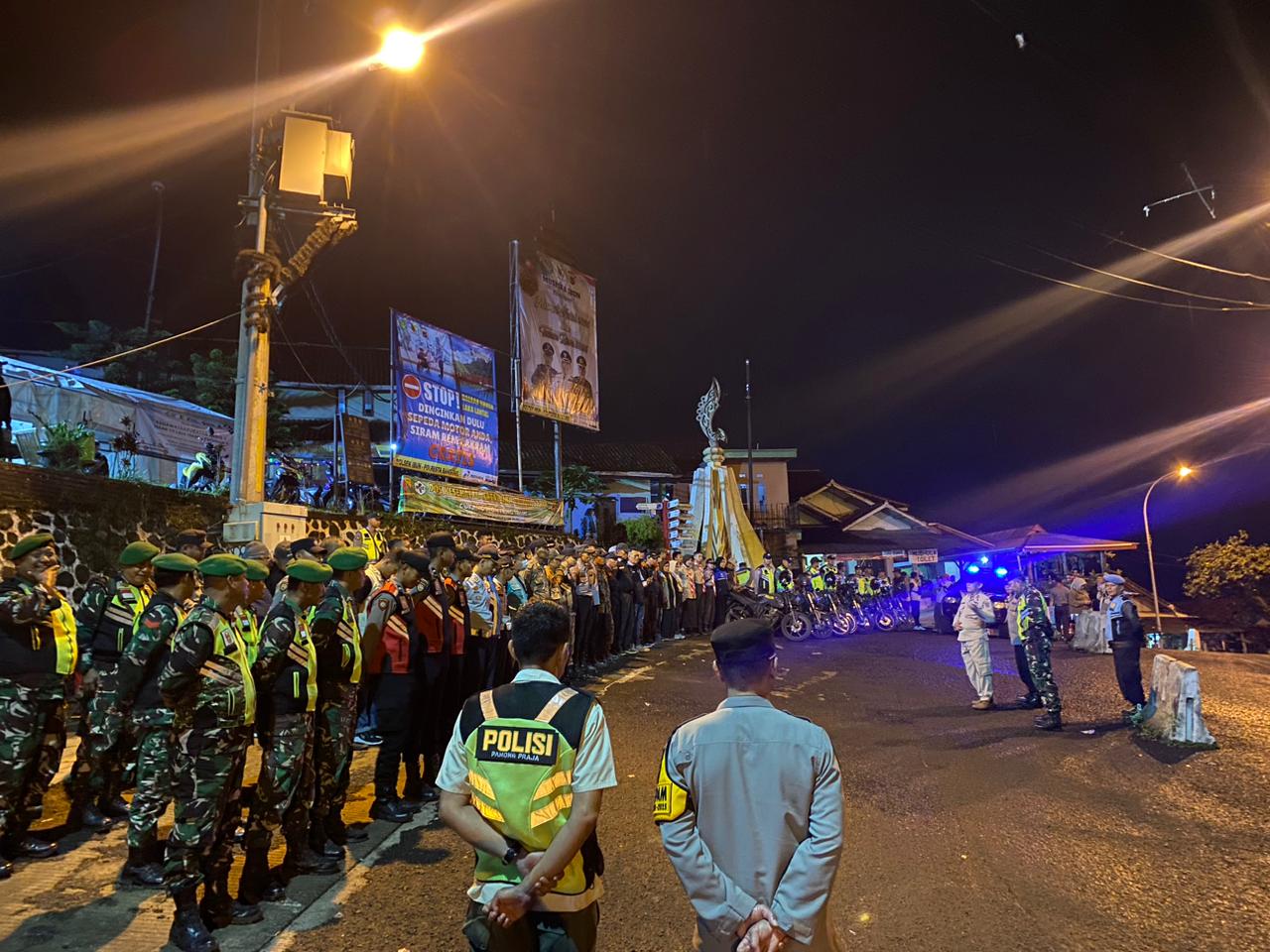 BANDUNGPRAKASA. COM. Polresta Bandung, // Dalam rangka meningkatkan kesiapsiagaan pengamanan menjelang malam pergantian Tahun Baru 2026, Petugas Pos Pengamanan Ops Lilin Lodaya 2025 bersama unsur Forkopimcam menggelar apel gabungan siaga di depan Pos Pam Cukang Monteng Kecamatan Ibun, Kabupaten Bandung. Rabu, 31 Desember 2025.