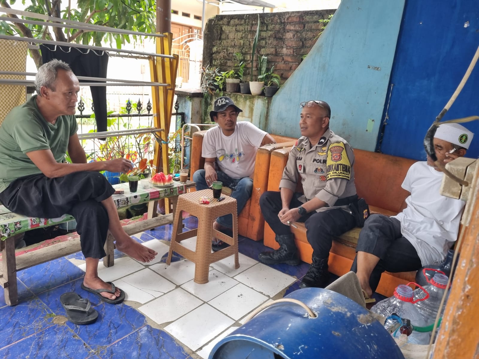 Dalam kesempatan tersebut, Aipda Dian menyambangi Sdr. Agus Setiawan (53) selaku Tokoh Masyarakat dan Sdr. Ustadz Tata (61) selaku Tokoh Agama setempat.