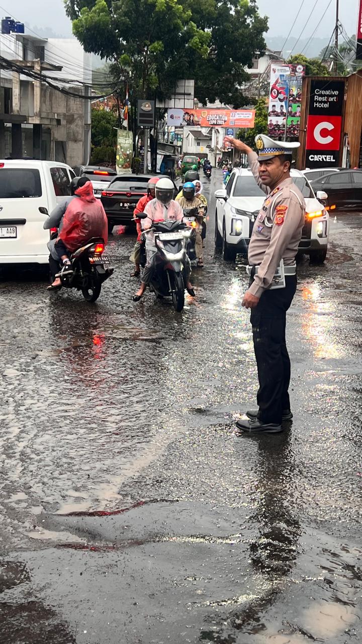 Kanit Lalu Lintas terlihat mengatur lalu lintas, membantu masyarakat dan ketika hendak menyebarang jalan, petugas juga melakukan pengaturan terhadap anak-anak sekolahan yang menyebrang menuju Sekolah.