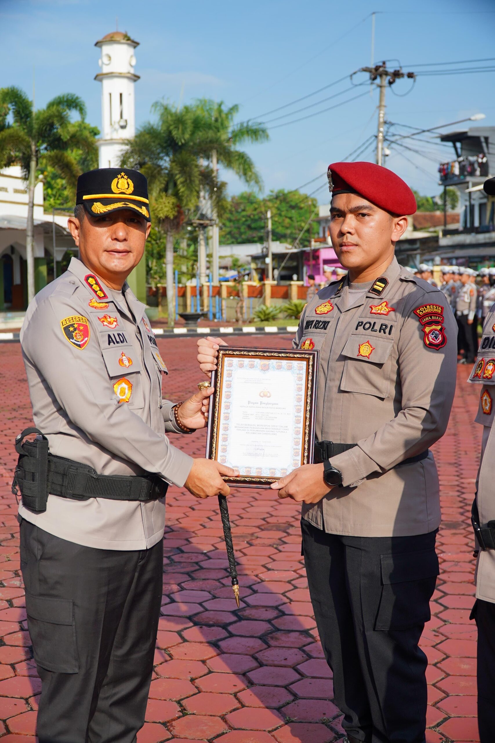 Selain itu, penghargaan juga diberikan kepada Kapolsek Cangkuang bersama 46 personel yang dinilai sigap dalam merespons pengaduan masyarakat di Perumahan Gading Tutuka 2, Kecamatan Cangkuang. Tindakan cepat tersebut menjadi bentuk nyata kehadiran Polri dalam memberikan rasa aman dan pelayanan terbaik kepada masyarakat.