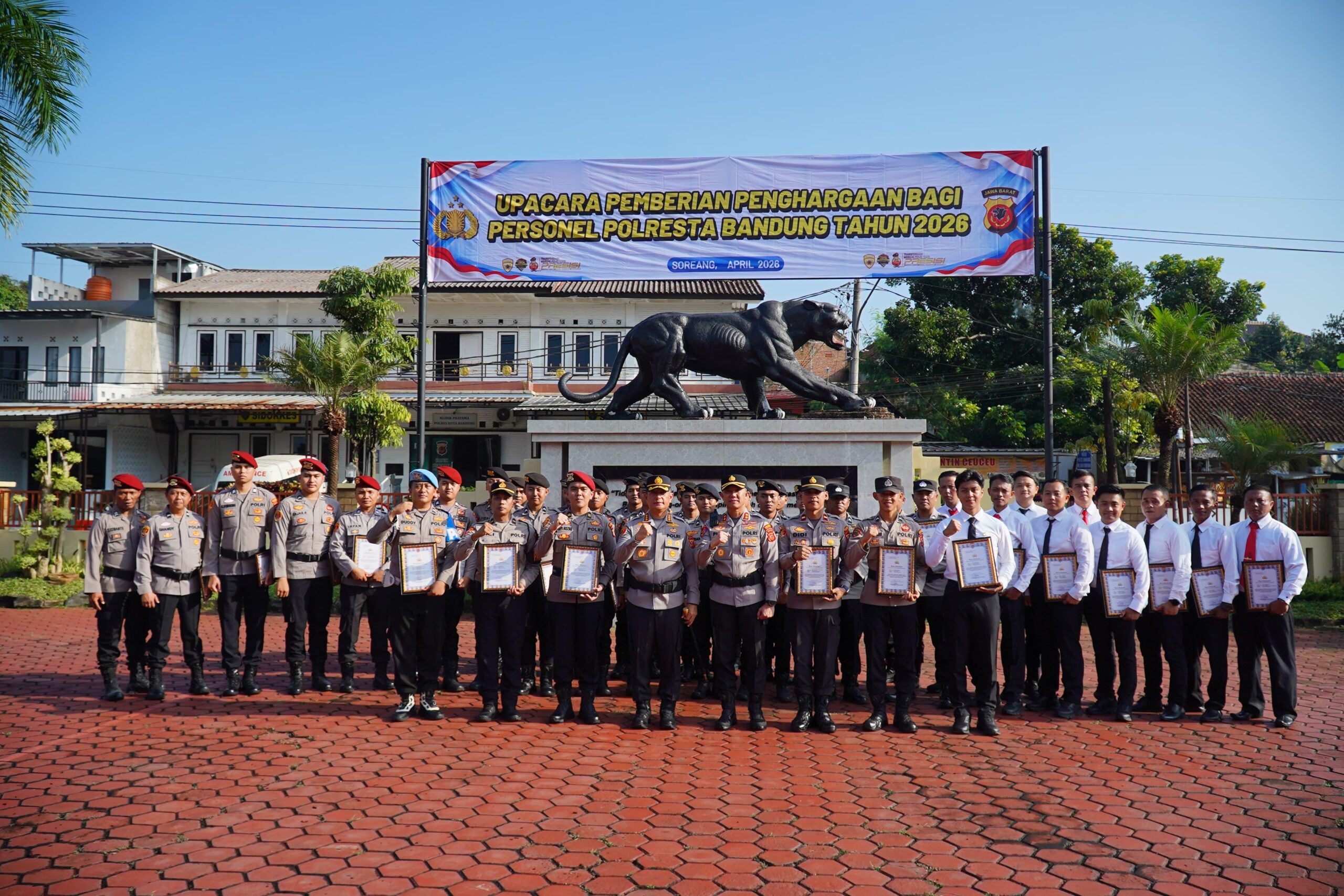 Penghargaan tersebut diberikan sebagai bentuk apresiasi institusi kepada personel yang dinilai memiliki dedikasi tinggi, prestasi membanggakan, serta respons cepat dalam memberikan pelayanan kepada masyarakat di wilayah hukum Polresta Bandung.
