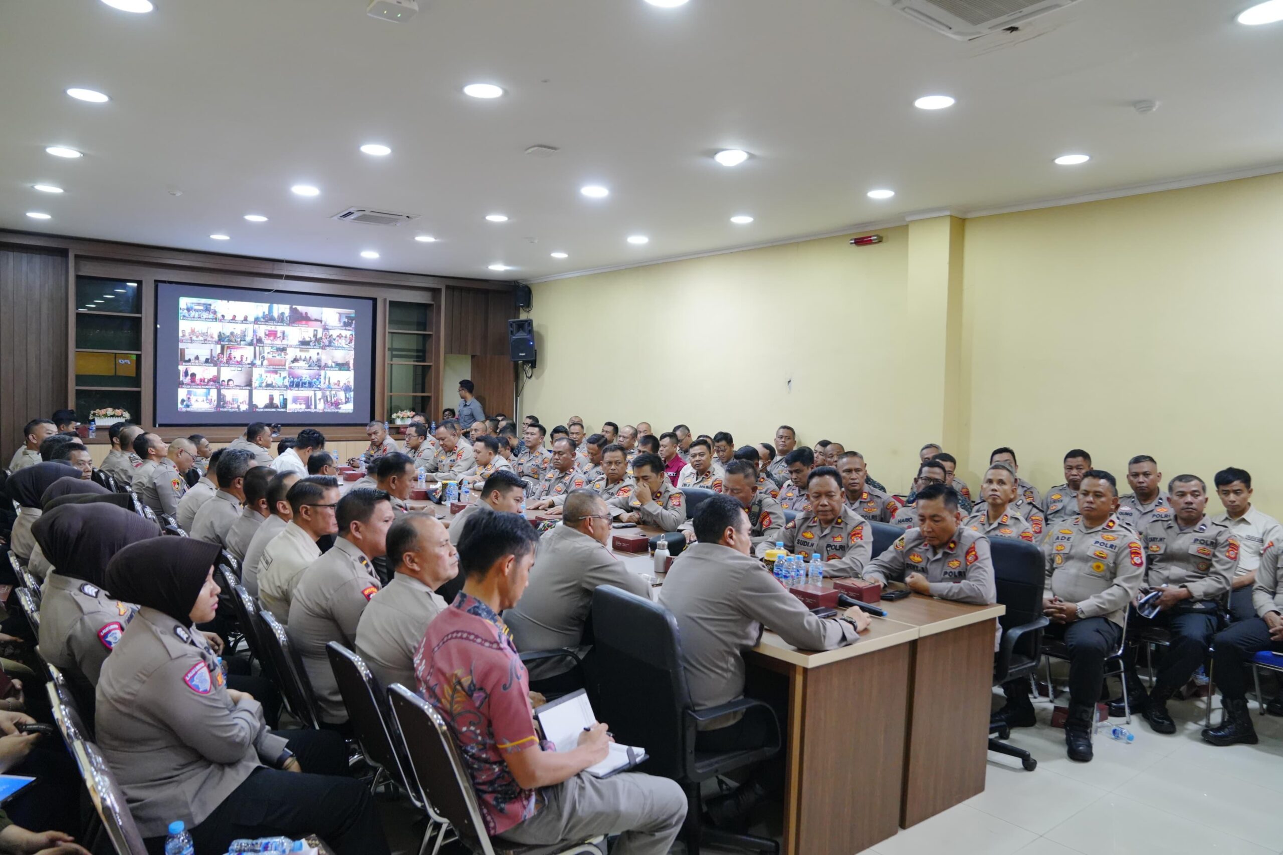 BANDUNGPRAKASA. COM. Kabupaten Bandung – Kapolresta Bandung Kombespol Aldi Subartono, S.H., S.I.K., M.H., CPHR memberikan arahan langsung kepada seluruh personel Polres dan Polsek jajaran Polresta Bandung dalam kegiatan yang digelar pada Jumat (28/11/2025) pukul 14.00 WIB bertempat di Ruang Rapat Besar Lantai 2 Mapolresta Bandung. Kegiatan turut dihadiri Wakapolresta Bandung AKBP Ari Setyawan Wibowo, S.H., S.I.K., M.Si., Para Pejabat Utama (PJU), para Kapolsek jajaran, Pamapta, Ka SPKT, operator 110 serta seluruh personel Polsek melalui zoom meeting.