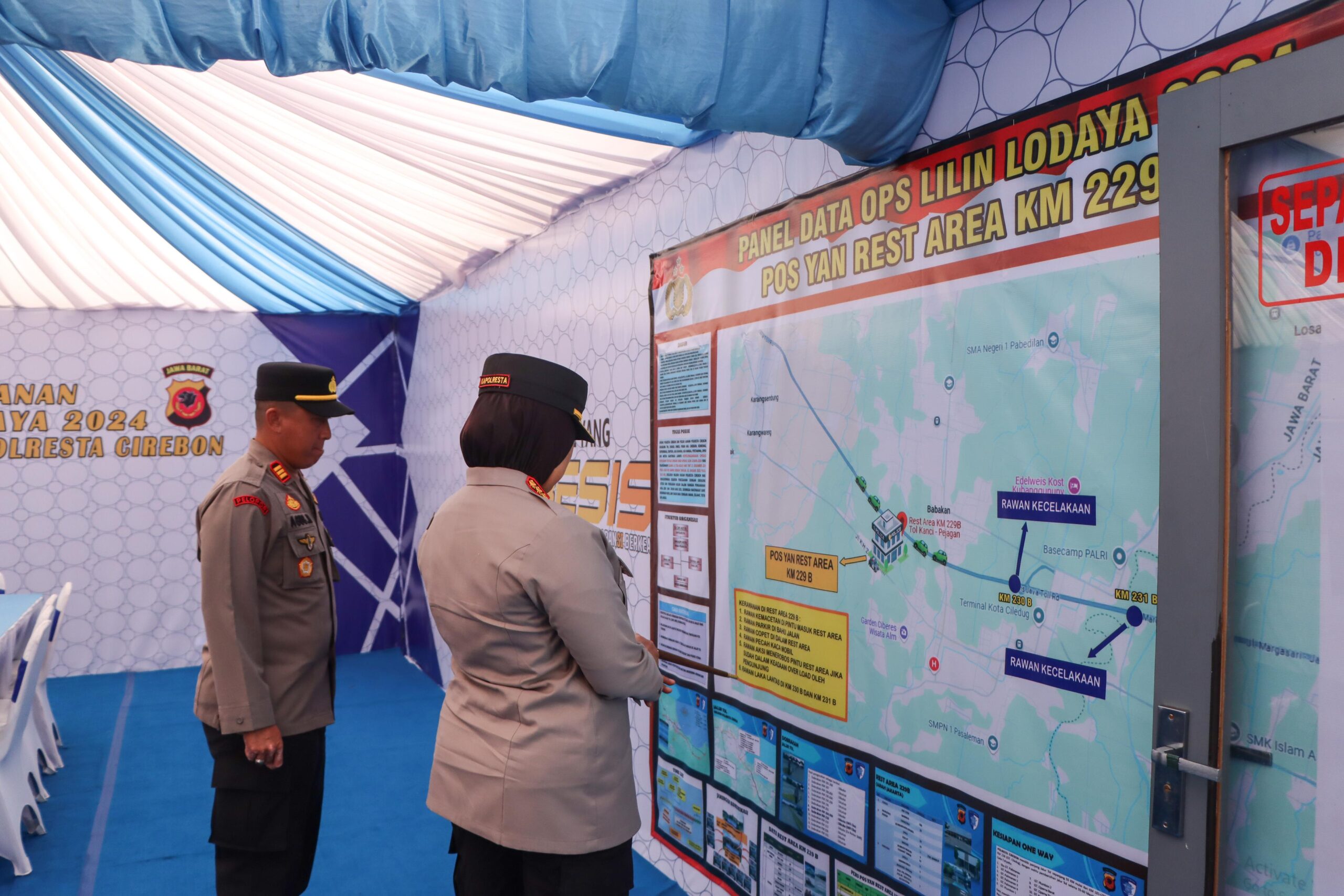 BANDUNG PRAKARSA, Kapolresta Cirebon, Kombes Pol Sumarni, S.I.K, S.H, M.H, beserta jajaran PJU Polresta Cirebon melaksanakan Pengecekan Pos Pelayanan Rest Area 229 B Dalam Rangka Pengamanan Arus Balik libur Natal dan Tahun Baru 2025, Kamis (2/1/2025).