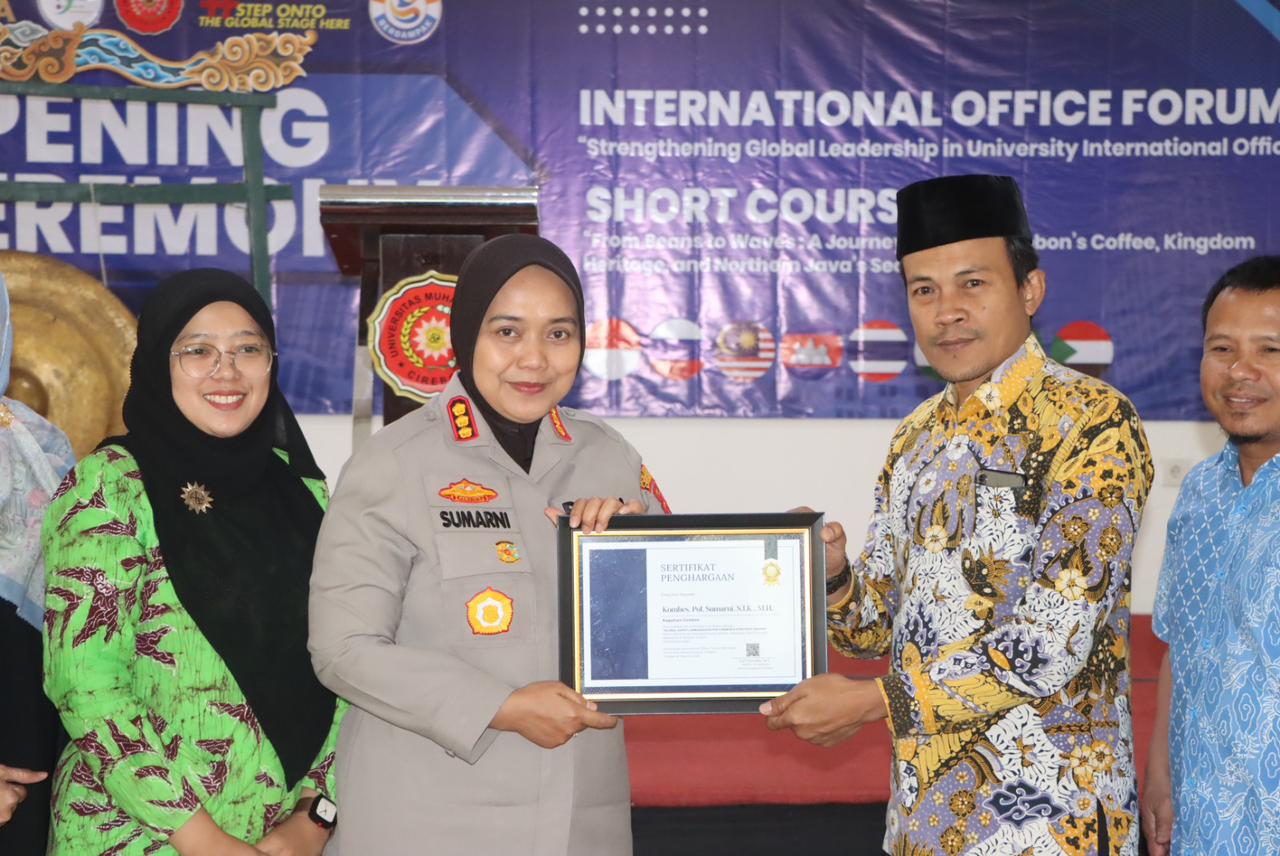 BANDUNGPRAKASA. COM. Cirebon – Kapolresta Cirebon, Kombes Pol Sumarni, S.I.K., S.H., M.H., menerima penghargaan bergengsi bertajuk “Global Safety Ambassador for Cirebon’s Strategic Region” dari Universitas Muhammadiyah Cirebon (UMC). Penyerahan penghargaan berlangsung di Aula Masjid Raya UMC Kampus 2, Jl. Fatahillah, Watubelah, Kabupaten Cirebon, Senin (18/8/2025).