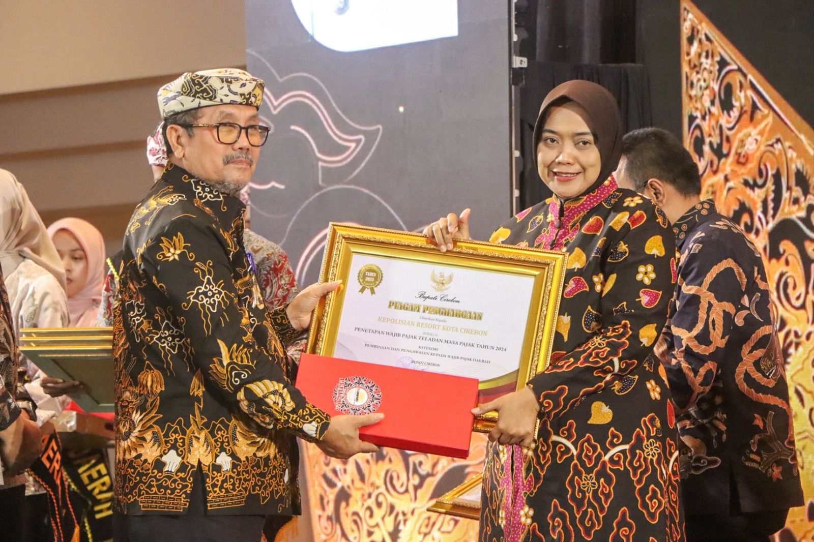 BANDUNGPRAKASA. COM. Kapolresta Cirebon KOMBES POL SUMARNI, S.I.K., S.H., meraih penghargaan sebagai Mitra Kerja Inspiratif Tahun 2024 pada kategori Pembinaan dan Pengawasan Kepada Wajib Pajak Daerah, Rabu (27/8/2025). Penghargaan tersebut diterima dalam ajang Penganugerahan Wajib Pajak Teladan Tahun 2025 di Convention Hall Aston Cirebon Hotel & Convention Center Kec. Kedawung Kab. Cirebon.