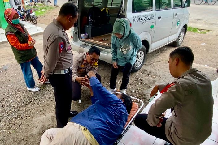 Setibanya di lokasi, tim segera memberikan pertolongan pertama kepada pemudik tersebut.
