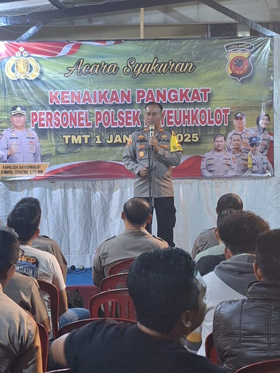 Acara syukuran yang berlangsung di Mapolsek Dayeuhkolot tersebut dihadiri oleh seluruh personel Polsek Dayeuhkolot. Dalam sambutannya, Kompol Suyatno menyampaikan ucapan selamat kepada personel yang mendapatkan kenaikan pangkat dan mengingatkan bahwa kenaikan pangkat adalah amanah yang harus diikuti dengan peningkatan kinerja.