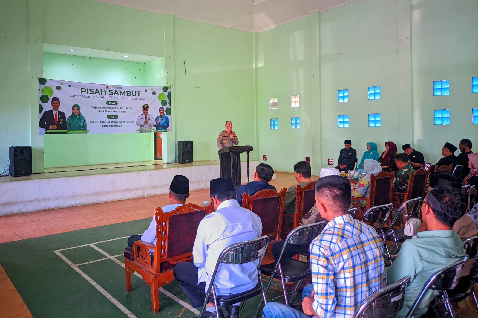 BANDUNG PRAKARSA, Nagreg, – Kapolsek Nagreg, Kompol Sumartono, menghadiri acara pisah sambut Camat Nagreg dan Ketua TP-PKK Kecamatan Nagreg, dari pejabat lama Bapak Enjang Wahyudin dan Ibu Asri Marliaty, S.Kep., kepada pejabat baru Bapak Dindin Hikmat Wahidin dan Ibu Etin Rusmiatin, yang berlangsung di GOR Sahabat, Kecamatan Nagreg, Kabupaten Bandung. Jumat (3/1/2025).
