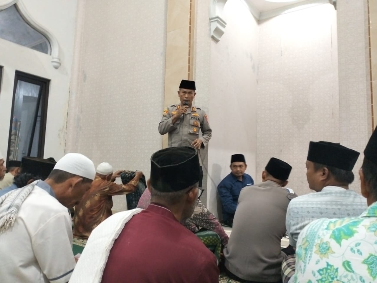 Kegiatan yang berlangsung pada Jumat (7/3) pukul 19.30 WIB ini dihadiri oleh jajaran personel Polsek Pangenan, di antaranya Aipda Imama J, SH, Aipda Sapuro, dan Bripka Asep Saefudin, SH. Selain melaksanakan ibadah tarawih bersama masyarakat, kegiatan ini juga bertujuan untuk mempererat silaturahmi antara kepolisian dan warga serta memastikan kondisi Kamtibmas tetap aman dan kondusif.
