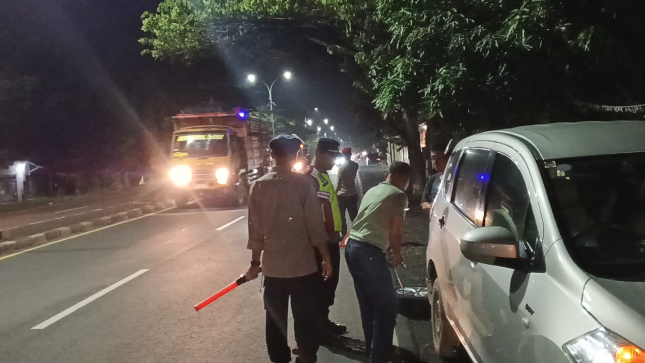 BANDUNG PRAKASA.COM. Cirebon – Kapospam Gebang Polresta Cirebon AKP Wawan Hermawan, SH beserta personil Pos Pam Gebang melakukan patroli rutin di sepanjang jalur mudik. Saat patroli, mereka melihat seorang pemudik yang mengalami kesulitan di jalan. Setelah didekati, ternyata pemudik tersebut bernama UJI, mengendarai kendaraan roda empat (R4) jenis Ertiga dengan nomor polisi B 2101 BZR. Kendaraan tersebut mengalami pecah ban di bagian belakang sebelah kanan. Jumat ( 28/03/2025) dini hari.