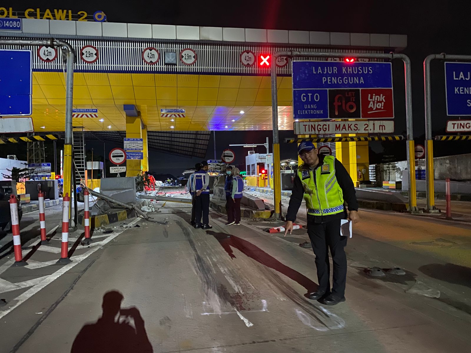 Kejadian bermula ketika sebuah truk tronton bermuatan galon yang melaju dari arah Ciawi menuju Jakarta diduga mengalami kegagalan fungsi rem, sehingga menabrak deretan kendaraan yang tengah melakukan transaksi pembayaran e-toll.