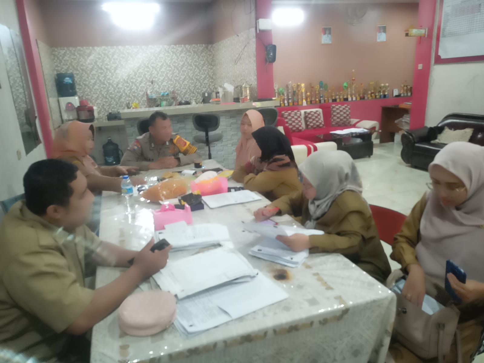 Bhabinkamtibmas Desa Rancaekek Wetan Kecamatan Rancaekek Bripka Dian Yakub Sugiana kunjungi Guru SDN Abdi Negara Rancaekek di ruang Guru SDN Abdi Negara Rancaekek Perum Abdi Negara Desa Rancaekek Wetan Kec. Rancaekek.